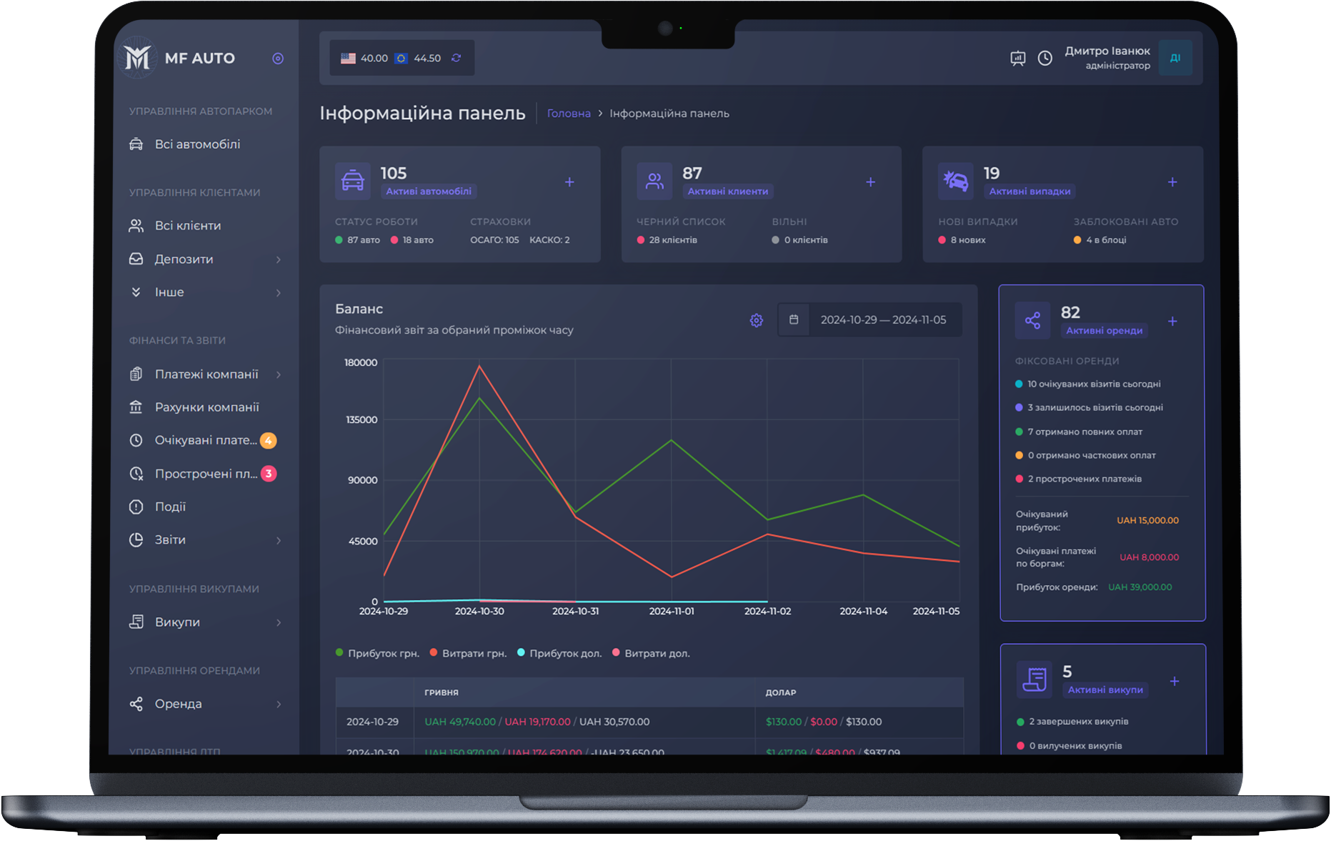 MF AUTO is a solution for fleets of various types and sizes engaged in car rental and/or leasing (buyout).