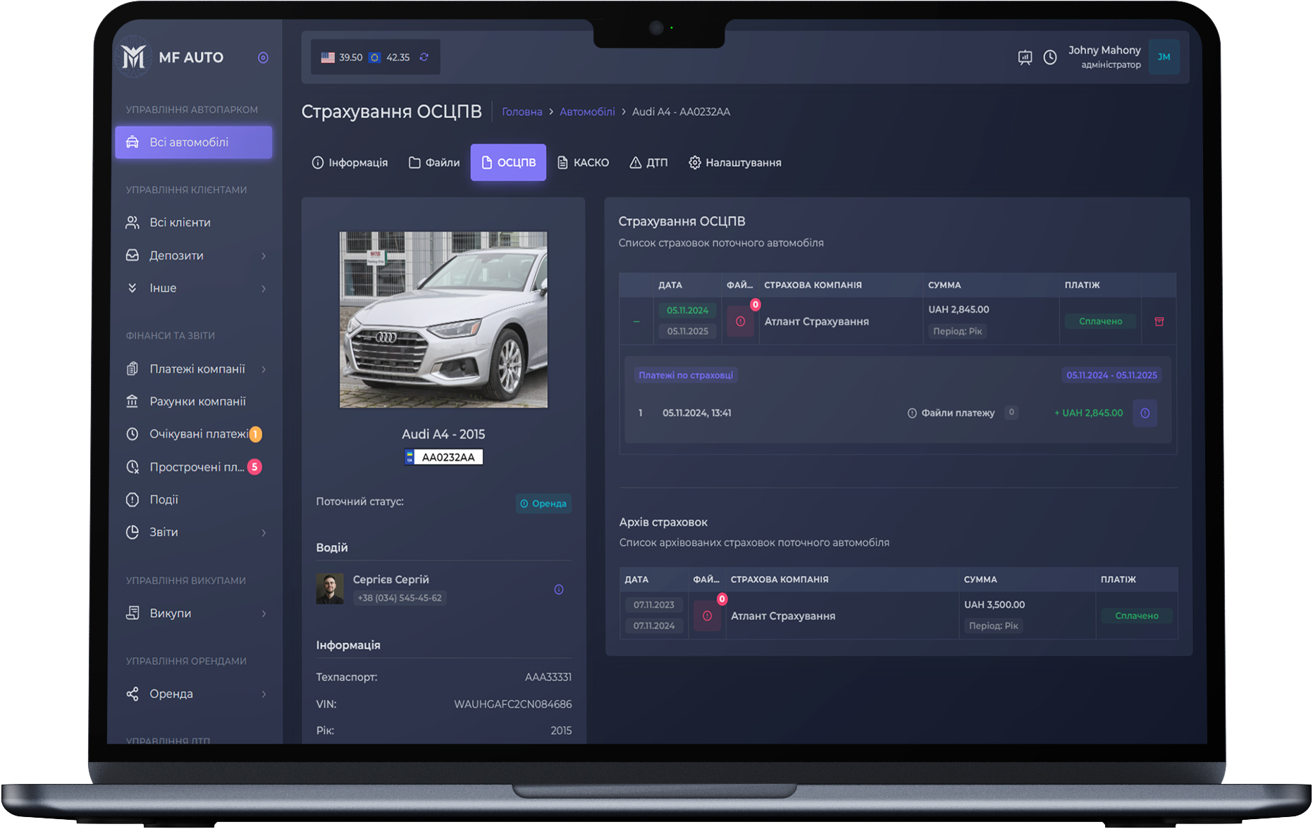The archive and list of insurance policies allow you to monitor your insurance and see the overall picture of vehicle insurance.
