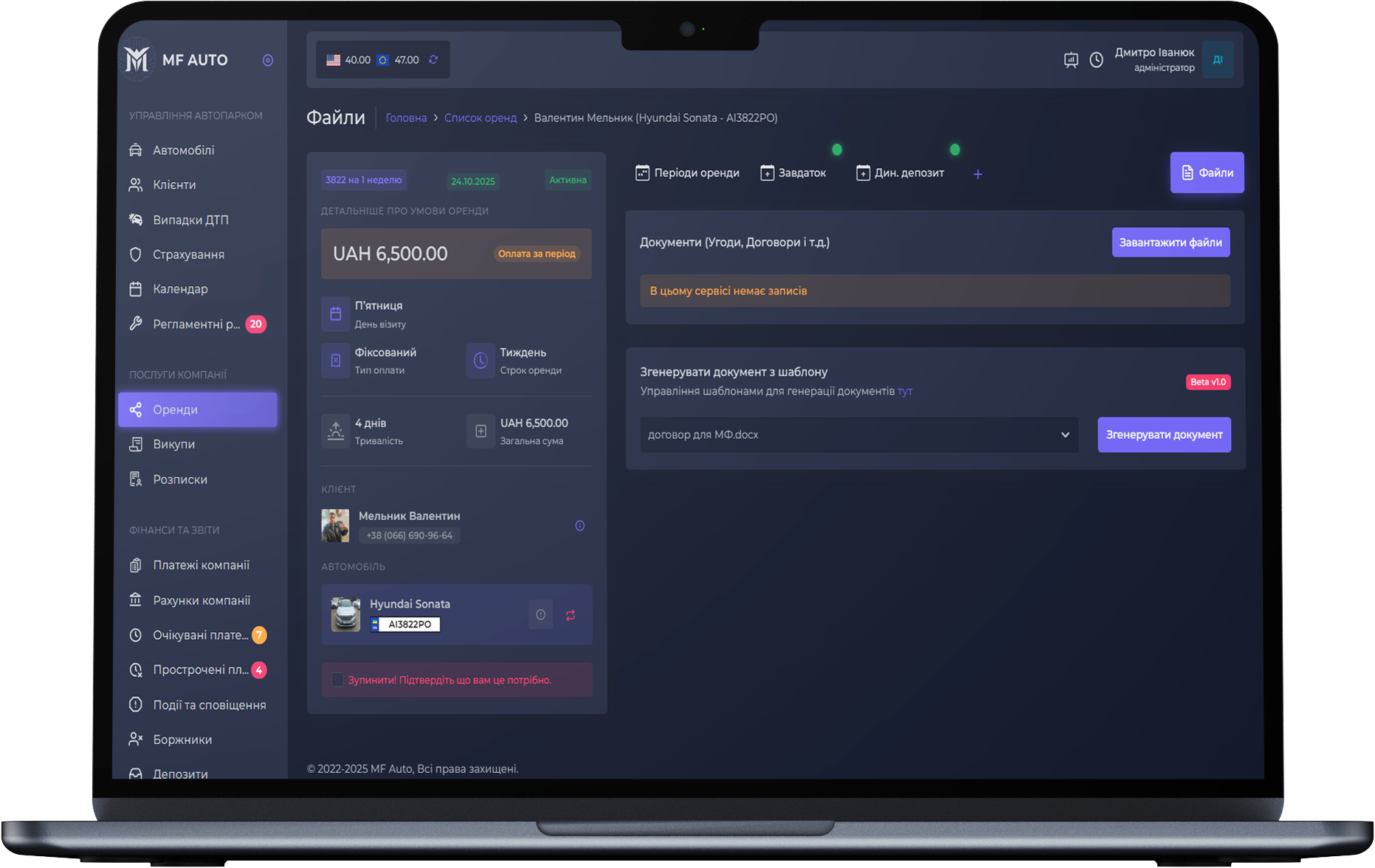 MF AUTO is a solution for fleets of various types and sizes engaged in car rental and/or leasing (buyout).