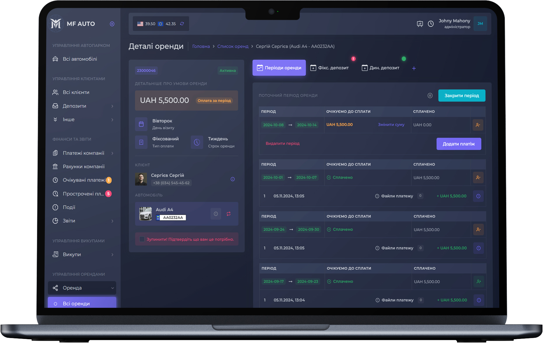 MF AUTO CRM allows you to manage fixed and percentage rentals. To do this, the system provides a number of functions that allow you to flexibly manage the service.
